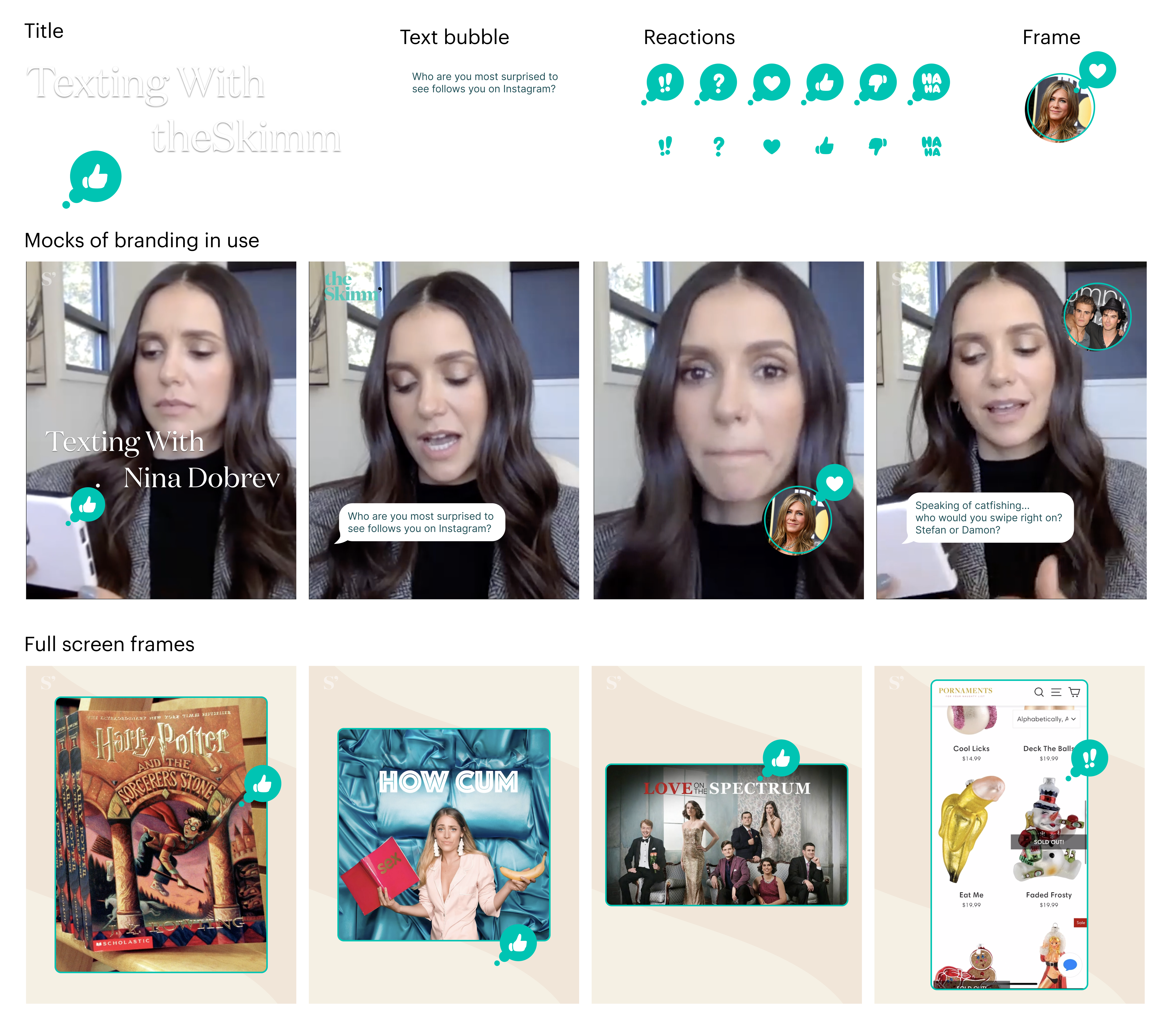 During 2017–2020, my role at theSkimm as a Senior, then, Lead Designer primarily focused on work that was in close creative partnership with the Video, Social, and Editorial teams. In order to scale efficiently as company headcount grew about 400%, I created template toolkits and systems to be used cross-functionally by these teams. This allowed those outside of the Design team to create assets that cohesively represented the brand across platforms.